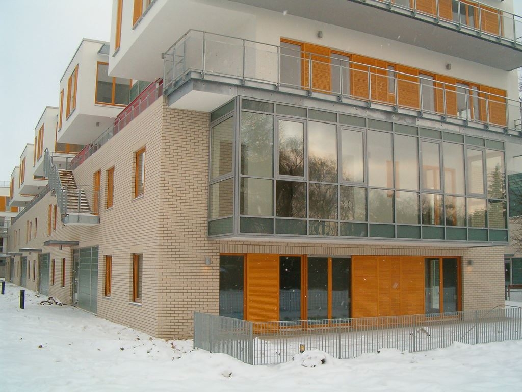 Elewacje z klinkieru osiedla apartamentów EKO-PARK przy ul. Biały Kamień 3 w Warszawie – 2.300 m2.