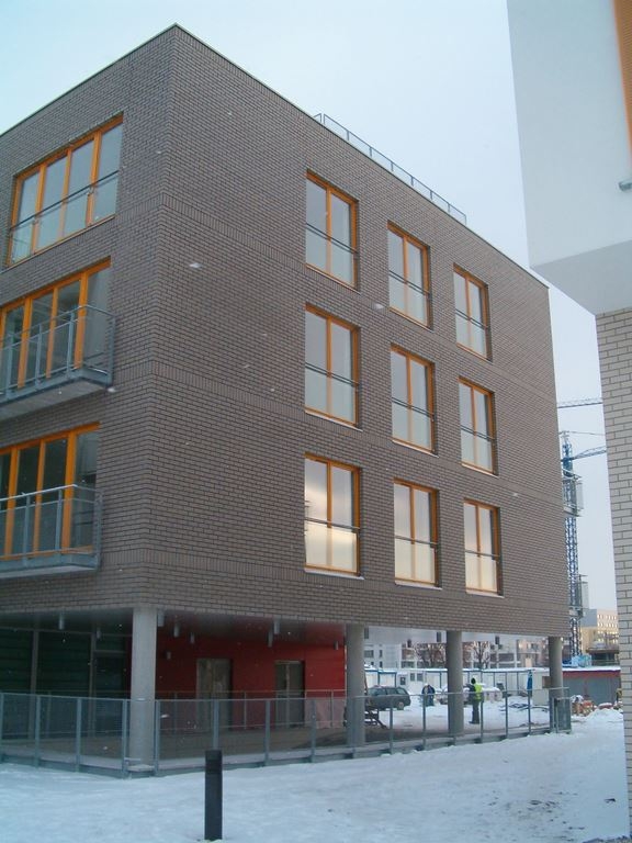 Elewacje z klinkieru osiedla apartamentów EKO-PARK przy ul. Biały Kamień 3 w Warszawie – 2.300 m2.